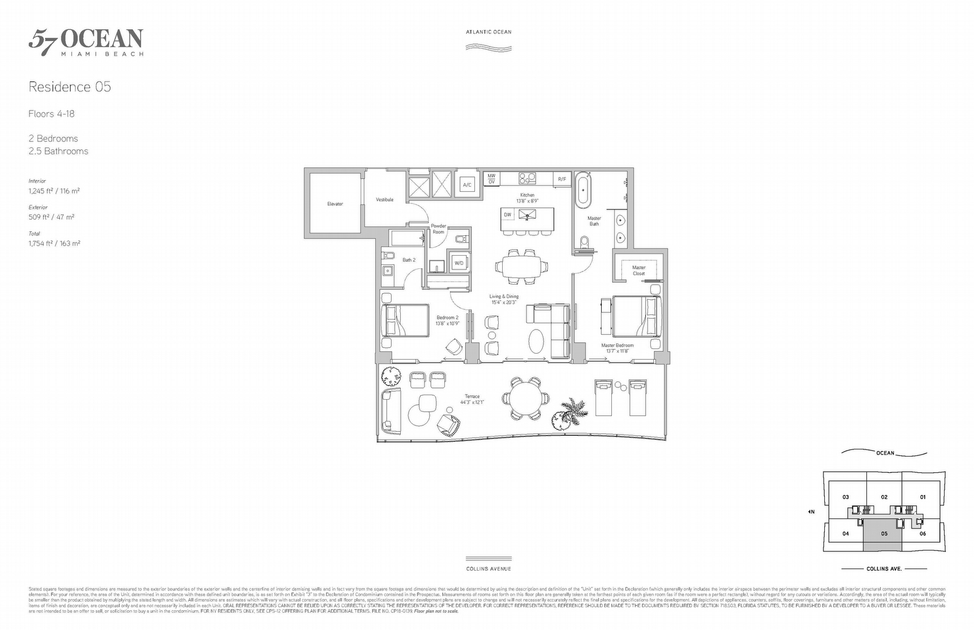 Inspired by the celebratory character of the Brazilian lifestyle, 57 Ocean brings Tropical Modernism to Miami Beach. Designed by world-renowned architectural firm Arquitectonica, the undulating wood-and-glass structure, embraced by lush foliage, blends harmoniously with its surroundings on the Millionaire’s Row section of Collins Avenue. Its prime location provides easy access to the very best of Miami, from the Design District and Downtown to Biscayne Bay and the building’s 220 linear feet of beach. Each of the 81 residences are graced with private elevator entries, streamlined Poliform kitchens, comfortable bedrooms and deep wood-lined terraces— true extensions of the home—whose glass balustrades frame the city or the sea. Conceived as one comprehensive suite delivered in many parts, 57 Ocean’s amenities are singularly special yet intuitively connected to one another. The Wellness Pavilion is a holistic retreat featuring private indoor and outdoor treatment rooms, a vitality pool, relaxation and meditation areas; a thermal suite incorporates heating and cooling elements including aromatherapy saunas, men’s and women’s steam rooms and an ice fountain. Beyond the spa, residents can further pursue their wellness goals in any way they choose, from sunrise yoga on the beach, to relaxing by the infinity pool, exercising on the third-floor sunset deck, or entertaining friends and family in the state-of- the-art Chef's Kitchen. This is a one-of-a-kind residence centered around multi-dimensional wellness, with an unparalleled connection to nature. 57 Ocean elevates mindful living in Miami Beach.
