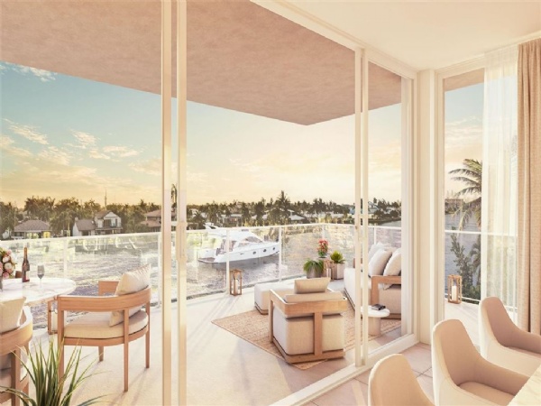 This elegant three-story building houses only six custom-designed residences, making it a true rarity in a city often defined by large-scale developments. The architectural concept is minimalist and modern, featuring clean lines, white stucco façades, and expansive windows that flood the interiors with natural light. Each residence is thoughtfully planned to maximize space and functionality, with open floor plans that create a sense of flow between the living, dining, and kitchen areas. Generously sized balconies and terraces further enhance the indoor-outdoor living experience that defines life in South Florida.