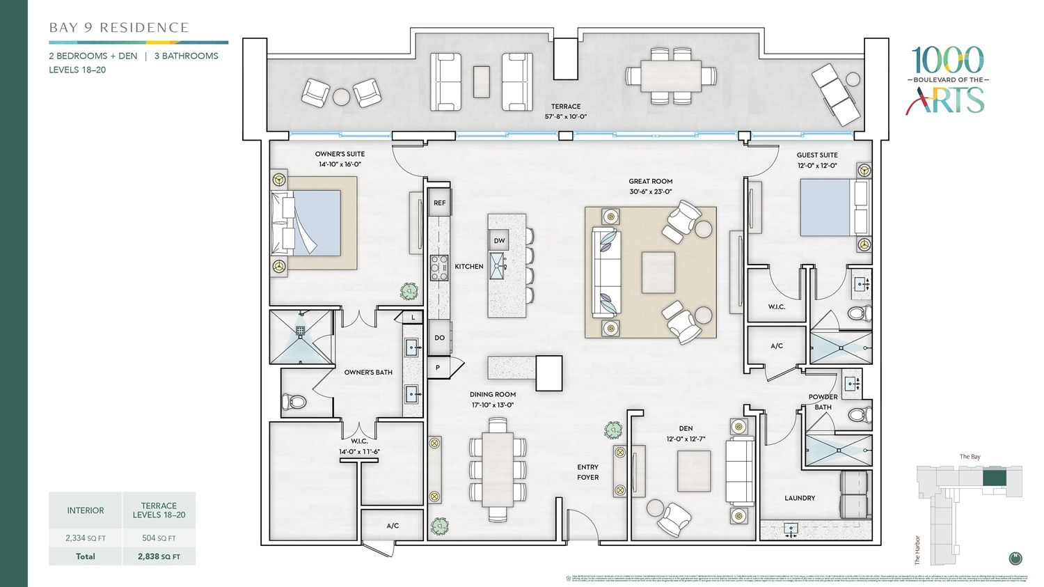 1000 Boulevard of the Arts is a premier 20-story Bayfront condominium offering 117 upscale residences within Sarasota's Quay waterfront district. This mixed-use neighborhood boasts a harbor front boardwalk, a yacht basin, high-end dining, shopping, and the Hyatt Centric Harborside hotel. It also features ground-level retail space ideal for a gourmet restaurant.