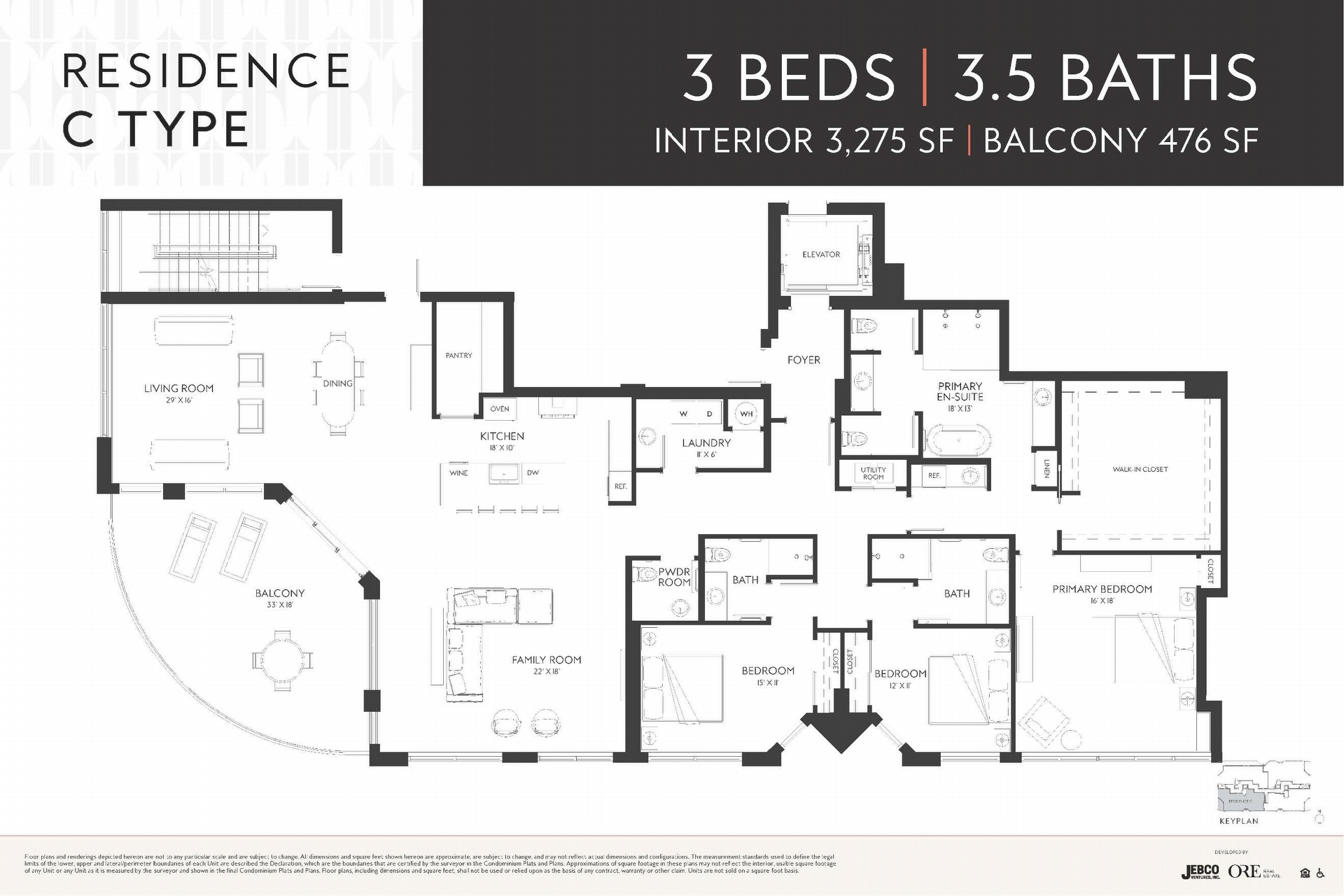 Residence C (SW View, 3 Bed/3.5 Bath, 3,751 SF Total)