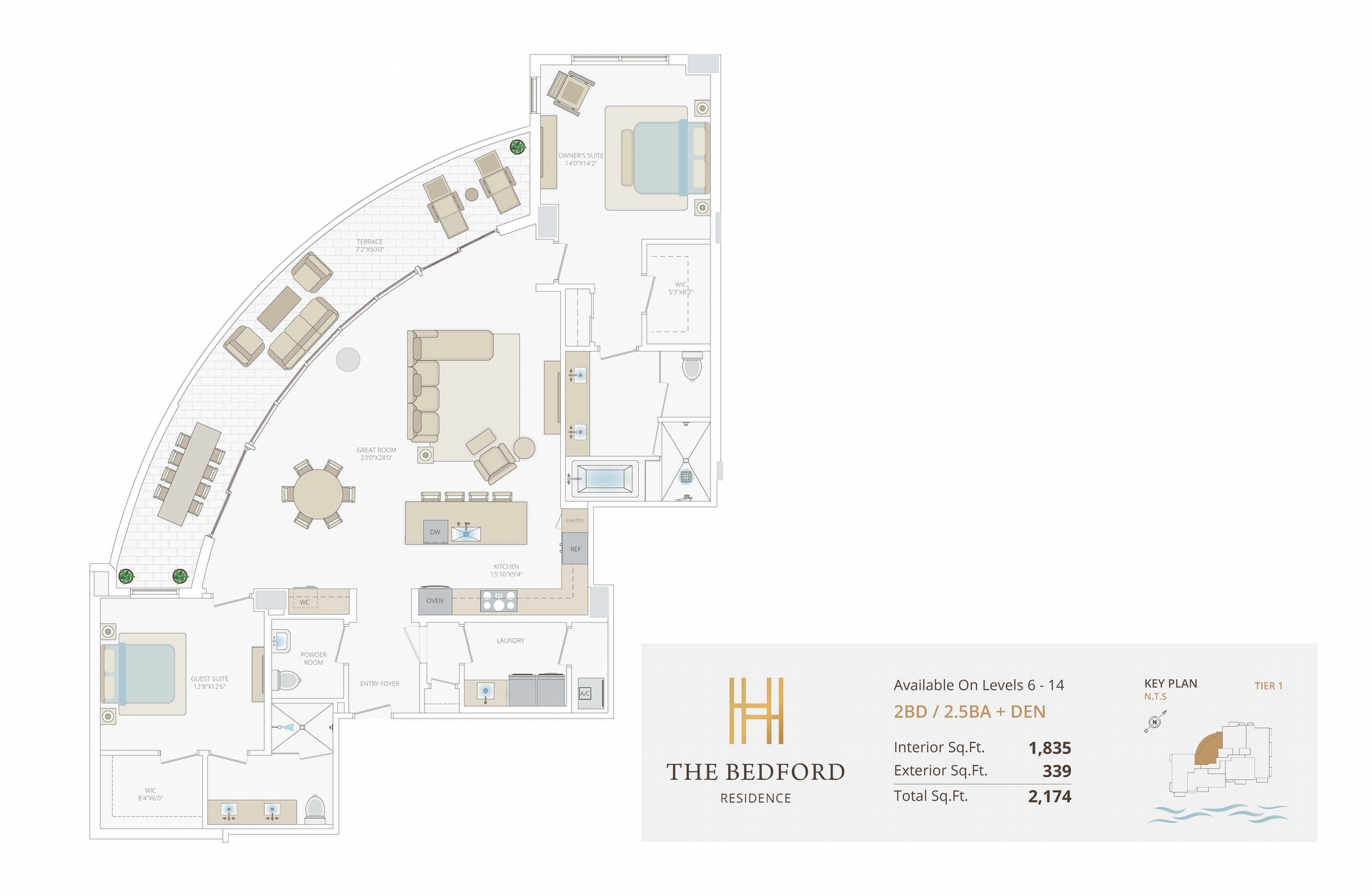 Grand bayfront residences with beautiful interiors, delivered furniture-ready with an abundant choice of designer finishes, coordinated by the renowned Palm Beach interior designer Bob Martin of The Decorator’s Unlimited.